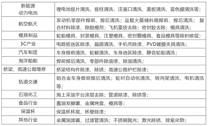 激光器發(fā)展的同時也促進我國激光清洗技術(shù)的飛速發(fā)展,激光清洗技術(shù)也成為工業(yè)、船舶、航空航天等高端制造領(lǐng)域不可或缺的清洗技術(shù),包括輪胎模具表面橡膠污物的去除、金膜表面硅油污染物的去除以及微電子行業(yè)的高精密清洗等。